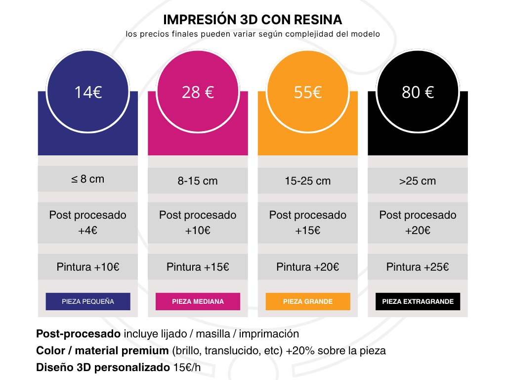 En Oniric View ofrecemos servicios profesionales de impresión 3D en alta calidad. Ya sea para prototipado, diseño personalizado o piezas decorativas, contamos con la tecnología y experiencia para convertir tus ideas en objetos reales. Nuestra oferta de impresión 3D en resina de alta calidad y PLA es personalizada para cada cliente, aunque aquí puedes consultar unos precios orientativos en función del tamaño de lo que desees imprimir.